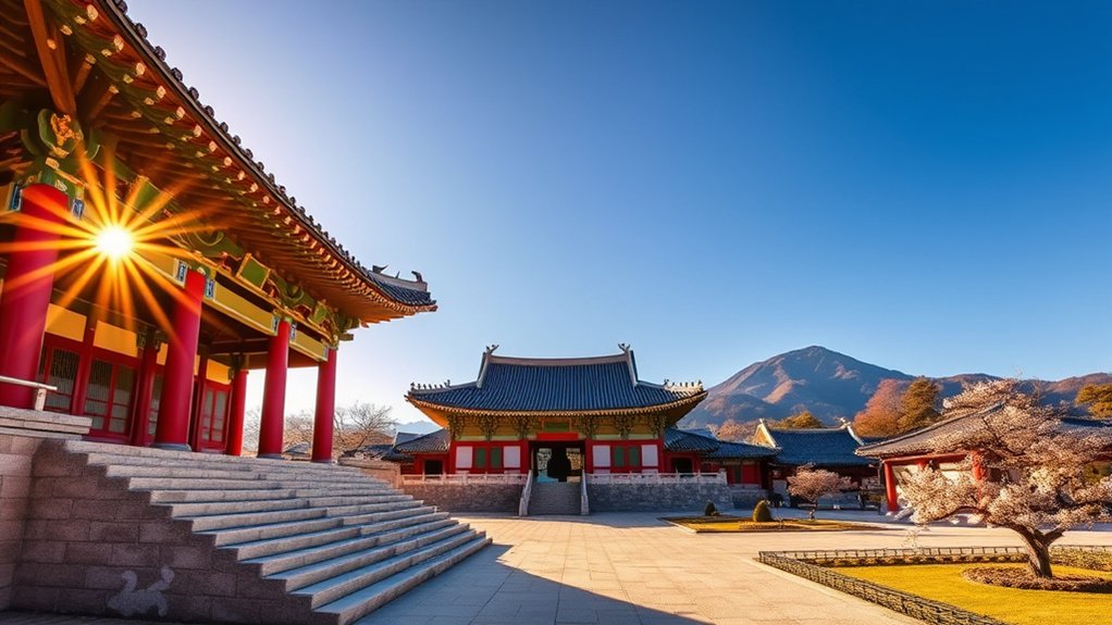 The palaces you’ll explore represent Korea’s painful journey from colonial subjugation to cultural revival. The comprehensive restoration initiative began with the First Gyeongbokgung Restoration Plan in 1990, aiming to return the palace to its 1888 condition. Much like the UNESCO recognition of Andong Hahoe Folk Village in 2010, these restoration projects showcase Korea’s commitment to preserving its cultural heritage for future generations.